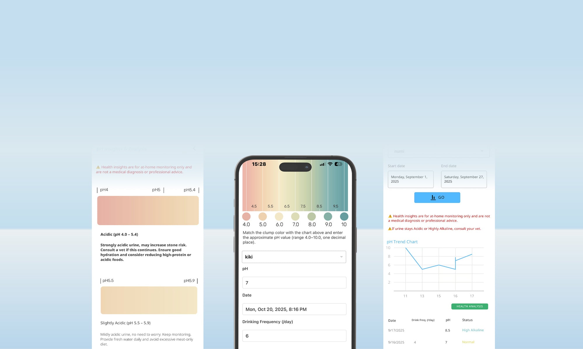 Each urine clump instantly changes color to reflect its pH level—acidic, normal or alkaline—offering clear, easy-to-read wellness signals.